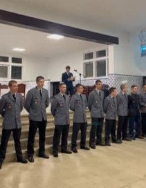 Os nove alferes-alunos Tirocinantes de Transmissões assinaram “Papiro das Transmissões” e o alferes-aluno mais antigo, entregou o Bastão ao aluno finalista mais antigo do 4º ano de Transmissões, com cinco alunos. .