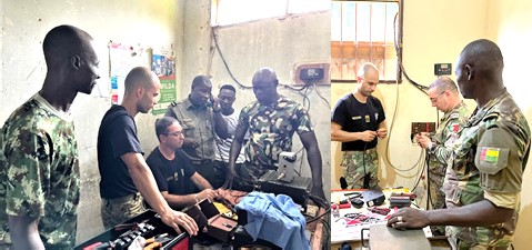 Devido à inexistência de uma oficina de reparação, foi criada temporariamente uma na nossa residência da Cooperação no Domínio da Defesa, onde foram testados e reparados vários rádios TR-28 e P/PRC-425, enquanto se dava formação “on job training” a 8 militares guineenses.