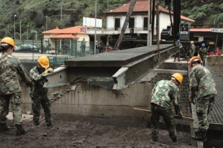Em 26 de fevereiro, o Governo Regional da Madeira formalizou o pedido às Forças Armadas para a montagem de uma ponte militar na localidade isolada da Fajã da Ribeira, no concelho da Ribeira Brava. Posteriormente, foi realizada a projeção de uma ponte militar Treadway, transportada por via aérea (C-130) para a Madeira e procedida a sua montagem.