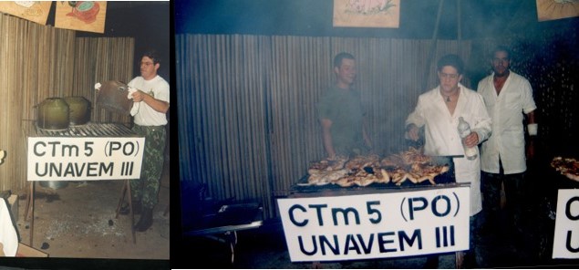 No menu constavam os tradicionais grelhados feitos pelos nossos militares, nomeadamente, de frango e de porco, entre outros. Embora não houvesse a água-pé típica desta época em Portugal, não faltou a sangria que deliciou todos os convivas que alternadamente se deslocavam às áreas dos grelhadores e das bebidas, deslocando-se depois para as mesas disponíveis no refeitório-geral da CTm5 para saborearem a refeição.
