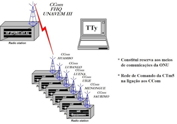 - Rede Triangular, em HF Fonia, para garantir as comunicações entre o Governo, a UNITA e as NU, em alguns casos para garantir estas comunicações estabeleceram-se redes de VHF;