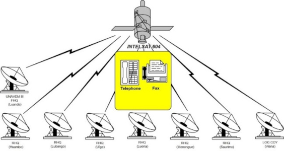 - Rede de Comunicações via satélite INTELSAT, com equipamentos da ONU, para substituir as redes de voz e fax, em HF, entre os QG, que permitia tráfego telefónico e fax;